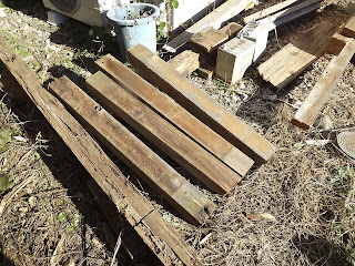 CO製の土台はありますが、地面を整地していないので、高さは適宜材木で合わせます。